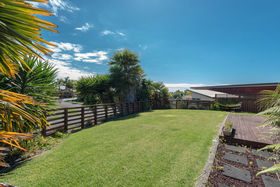 When you first walk in you will see that the spacious living room will accommodate most families furniture! The open plan kitchen, dining and second living area are soaked in the sun all day long. The dining area opens onto a spacious decking, which is almost ground level (great for young children and the elderly). Despite the sizeable deck, there is still plenty of lawn for pets and children to happily play in the sun.